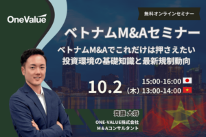 ベトナム市場への理解を深め、M&Aを通じた海外展開の第一歩を踏み出す機会として、ぜひ本ウェビナーにご参加ください。