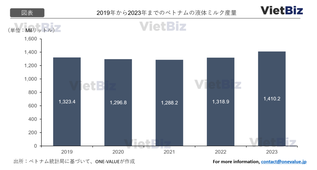 コロナウイルス(Covid-19)感染症拡大後の世界的な経済不況にもかかわらず、2022年から2023年にかけて、ベトナムのミルク市場の売上は依然として伸びており、2022年には125,200 Bil VND、2023年には125,882 Bil VNDに達した。