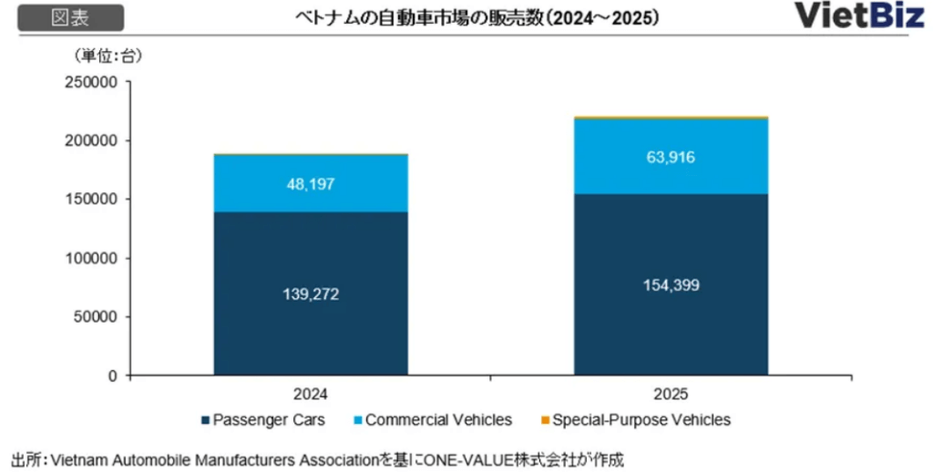 2025年9月時点において、ベトナム自動車市場は2023~2024年の停滞期を経て回復基調の継続。ベトナム自動車製造業者協会(VAMA)の統計によれば、2025年1~8月累計販売台数は前年同期比17%増。電気自動車およびハイブリッド車が最速成長分野。政府は引き続き電動車に対する特別消費税減免政策を実施。メーカー投資拡大の環境整備。