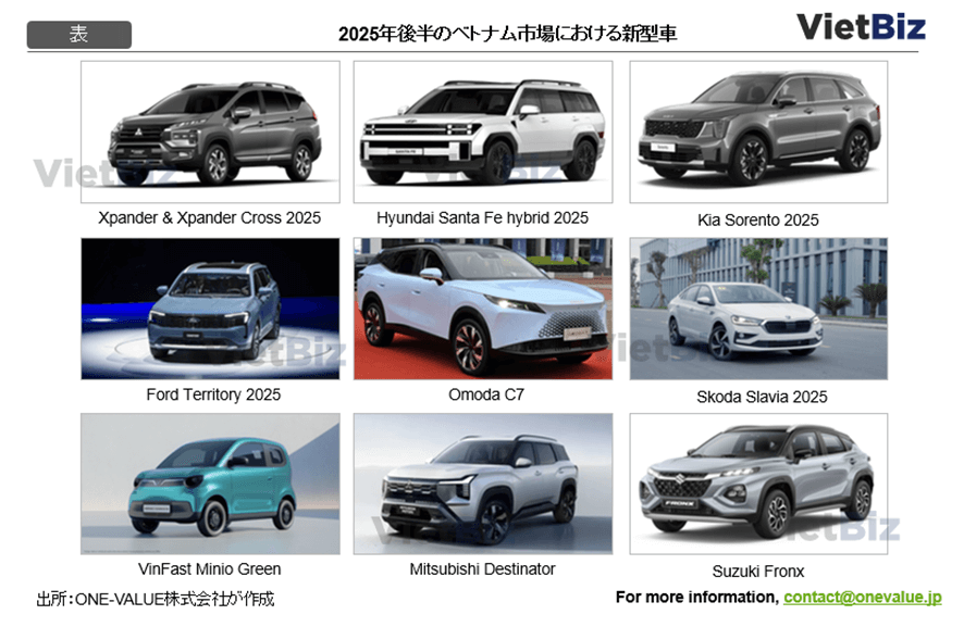 2025年後半、ベトナム自動車市場において、国内外のブランドから多数の新型車が投入される動き。競争環境の激化とともに、消費傾向が環境対応車・燃費効率車および多様な価格帯に明確にシフトしつつある状況。三菱、現代、起亜、フォード、ビンファスト、シュコダ、スズキなど主要メーカーが、従来型ガソリン車、ハイブリッド車、小型EVまで幅広く新製品を計画。需要の分化に対応する新型車は、業界全体の方向性を規定する重要なシグナル。
