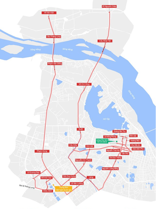 現在、交通網の発展は都市化や人口増加に追いついておらず、道路や駐車場を含む交通用地の割合は、大都市の基準に比べて依然として低い。たとえば、2023年時点で、ハノイでは都市中心部の20~25%の都市開発用地を交通用に確保する必要があるが、現時点で約12%しか達成されていない。また、駐車場には3~4%の用地が必要だが、現在はわずか0.4%しか確保されていない。