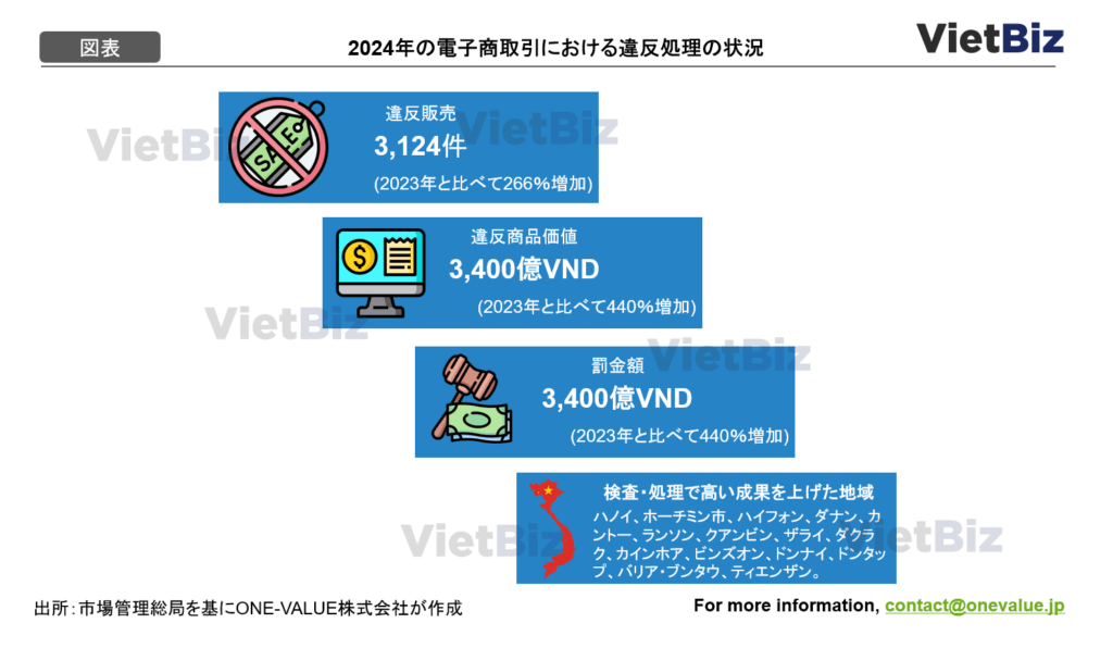 偽造品の問題は、消費者の権利を侵害し、正規企業のブランド価値を損なうだけでなく、市場全体の健全な発展を妨げる。ベトナム政府は、商品のトレーサビリティを義務化し、販売者の本人確認を強化し、「消費者」アプリの導入などを進めて、オンライン市場の透明性を高めようとする。